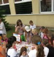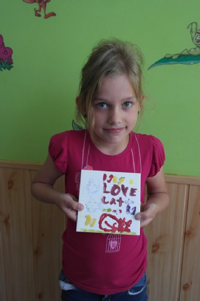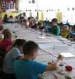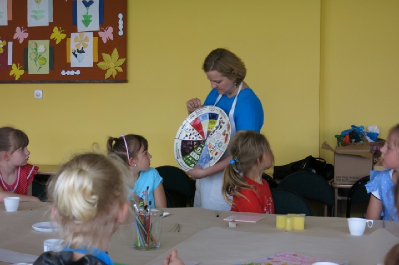 W czasie warsztatów dzieci pomalowały również wspólnie talerz - prezent niespodziankę dla Pana Dyrektora :)