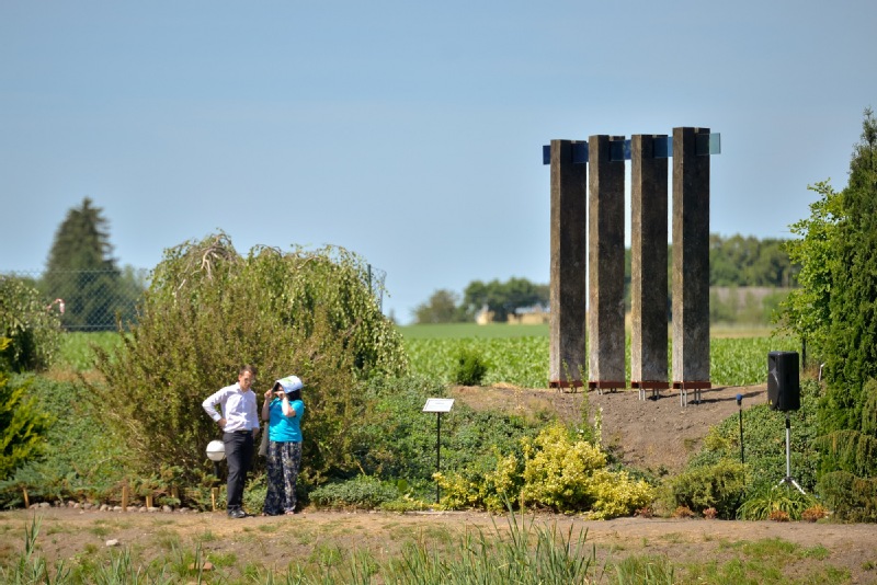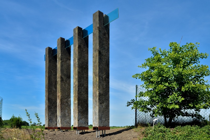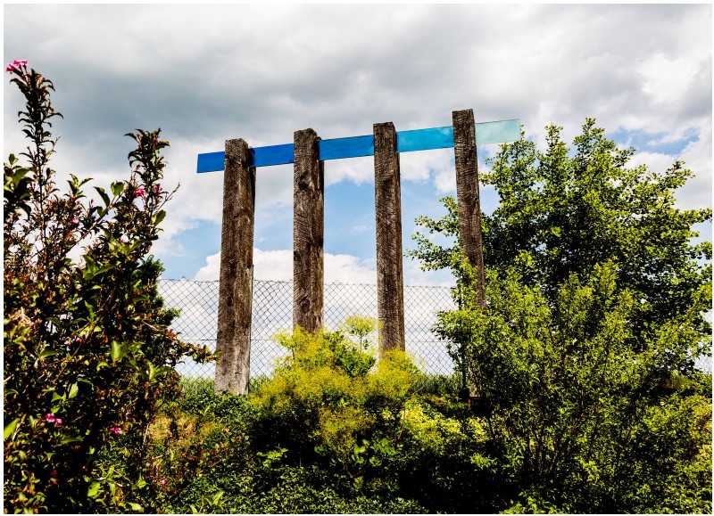 AKWEDUKT wykonany jest z dwóch naturalnych materiałów – drewna i szkła. Cztery pionowe, drewniane elementy, są połączone w górnej części taflami szkła. Szkło zmienia swój kolor od ciemnego błękitu do całkowitej przejrzystości. Drewniane obeliski stanowią tutaj rodzaj symbolicznych filtrów zmieniając/oczyszczając jego kolor.
