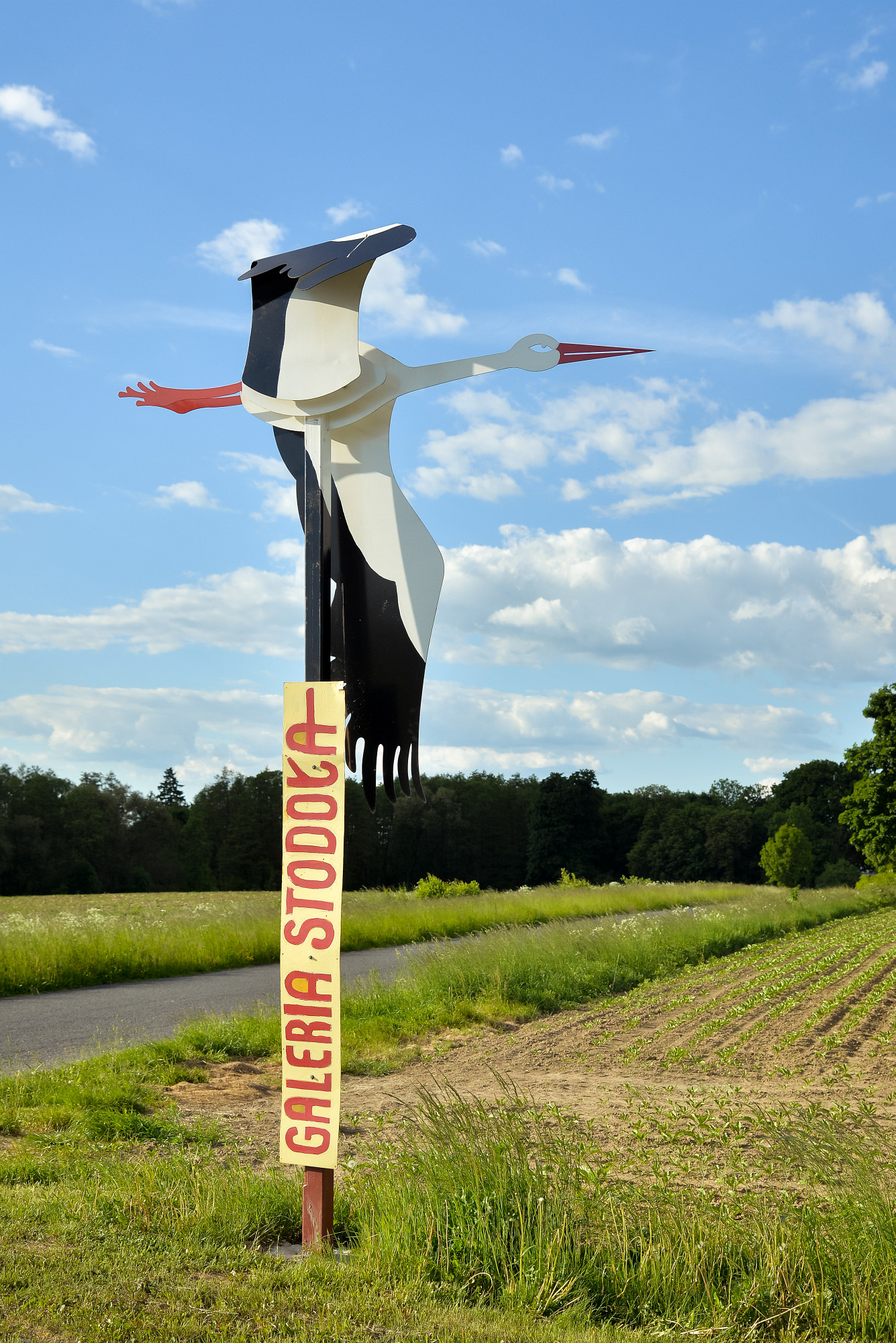 Stacja bocian - symbol polski, symbol trwania - powrotu, bezpieczeństwa i szczęścia. Obiekt jest drogowskazem-naprowadzającym gościa do odwiedzenia galerii, zwiedzenia parku, do zatrzymania się na chwilę. Znak może też być jednocześnie symbolem ostatecznym, czego przykładem jest drogowskaz bociana ze stali, który nie chce odlecieć.