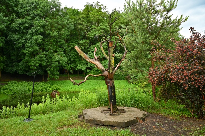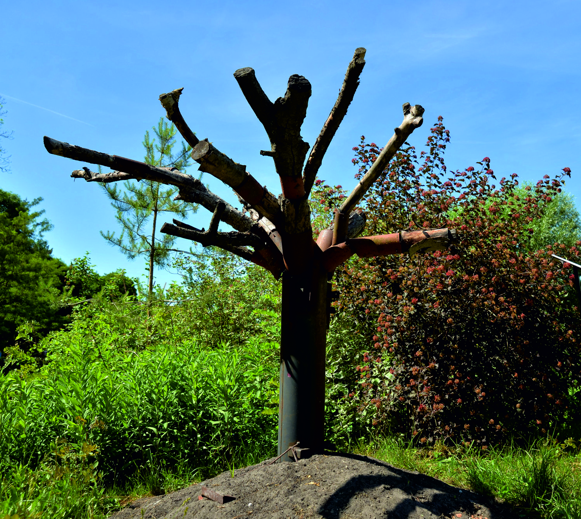 Drzewo - obiekt przestrzenny. Drzewo ekologiczne? Raczej drzewo przestrogi, które zostało zaprojektowane modularnie, tak ,by mogło w każdym miejscu i czasie manifestować raj utracony. Drzewo modularne, binarne, kosmiczne a może drzewo życia? Założenie konstruujące drzewo to stal i drewno, łączone przemiennie. Ekologiczny podtekst podszyty jest również historią budowy i powstawania Wszechświata. Życie minione, utracone, wieczne? Religijne? Drzewo krzyż, jako rajskie życie wieczne (nie, jako drzewo hańby?). A może tylko dendrologiczny symbol podwójnie kreślonego h. Eko 22 jest już dalej, bo w 22 wieku, gdzie z założenia musimy pamiętać o naszym ekosystemie, którego jesteśmy nieodłączną częścią.