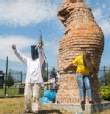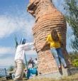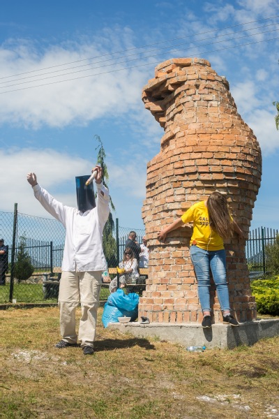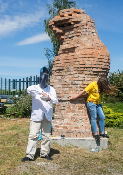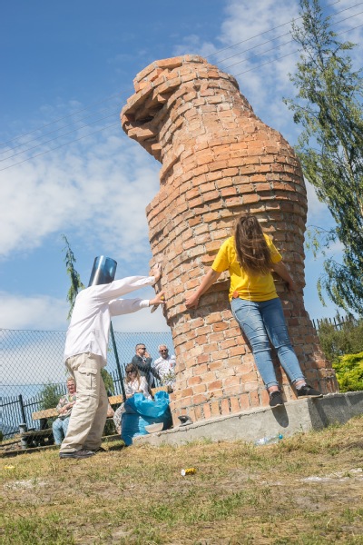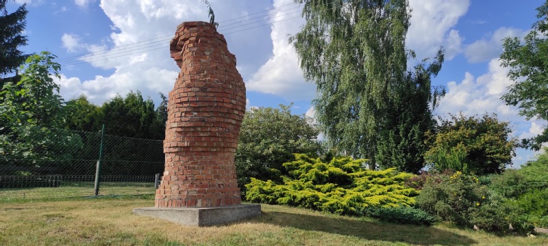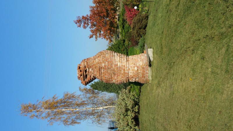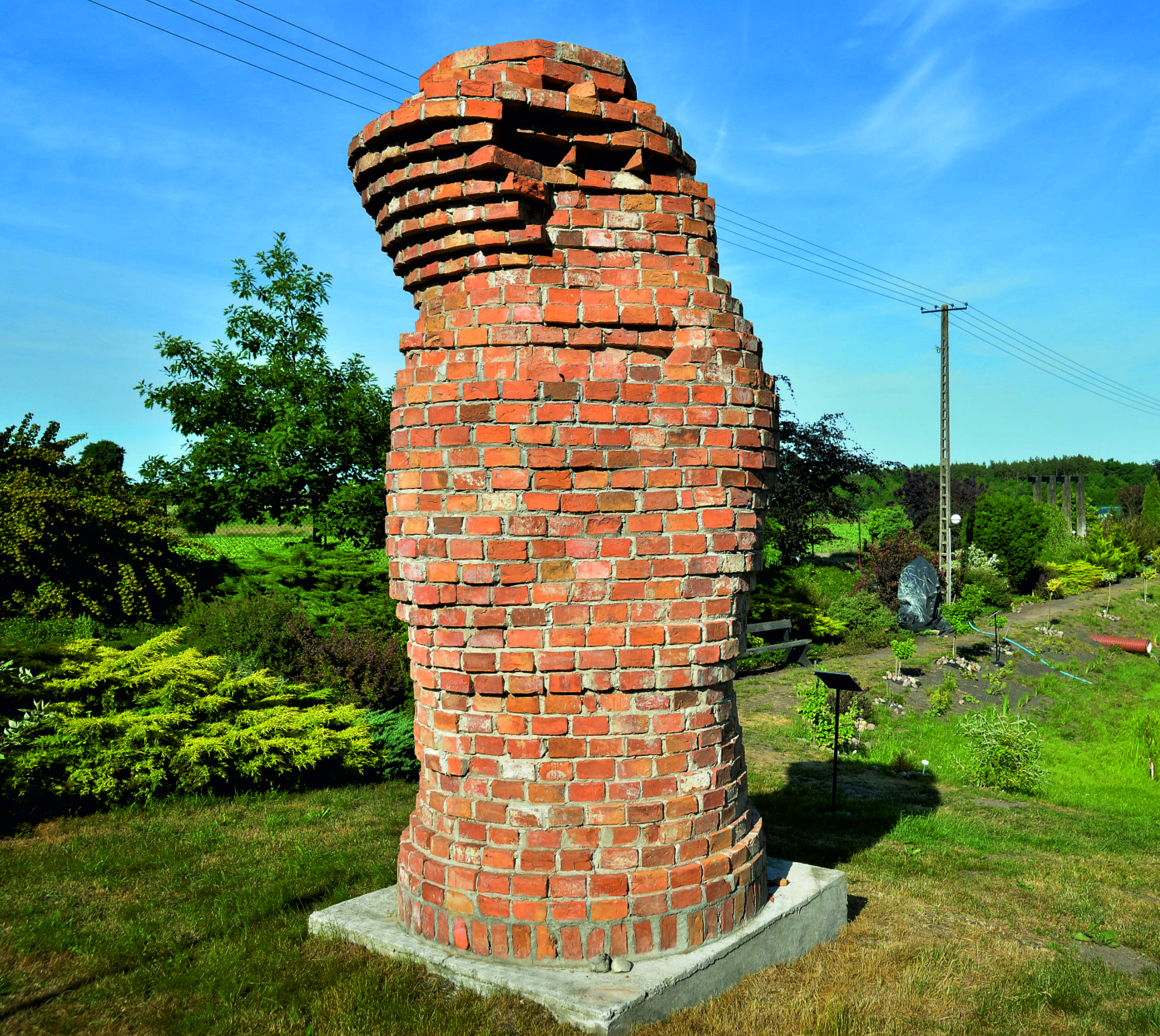 Kilkumetrowy obiekt sytuowany nad stawem może w sobie pomieścić kilka ton prostopadłościanów. Dwa tysiące bardzo popularnego kiedyś budulca ma za zadanie stworzyć brzemienną rzeźbę symbolizująca uniwersum cywilizacyjne dawnego miasta. Cegła ,,Narodzin” była osadzona w niespoistej zaprawie co umożliwia nam jej powtórne użycie. Prawie nienaruszone lico ceramiki świadczy o dobrym materiale użytym do produkcji cegły, pochodzącym z pobliskiego zakładu.
