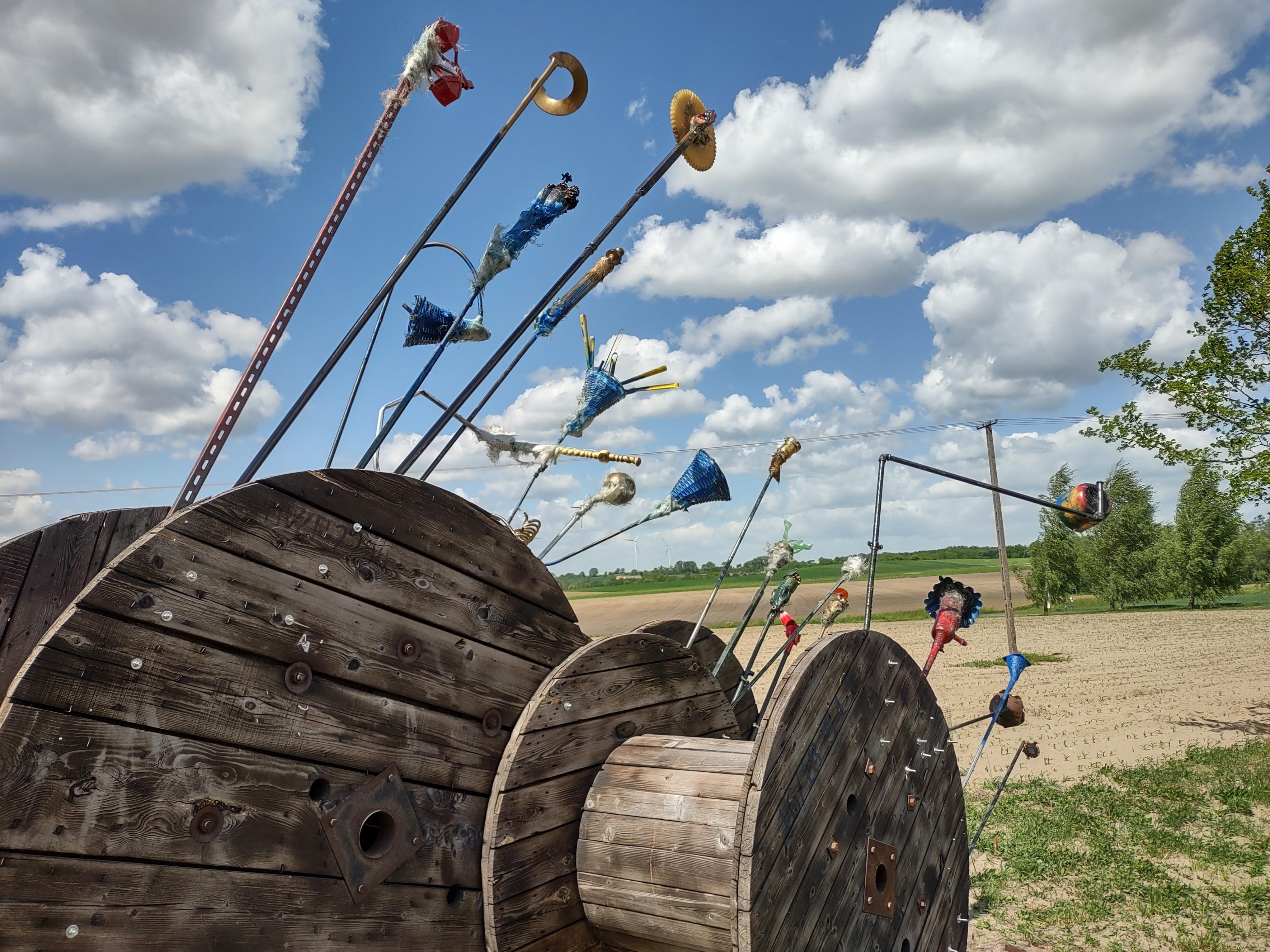 Realizacja odłożonego projektu artysty, gdzie szpula kablowa przekształca się w nowe rośliny, które przetworzone wracają do lasu. Wracają do miejsca narodzin. Stalowe, szklane, żywiczne kwiaty mimo próby przetworzenia wracają do świata trwania życia.